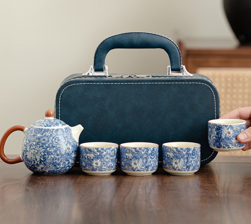 青花雅韻・便攜旅行茶具組,行走之間,也能優雅品茗。