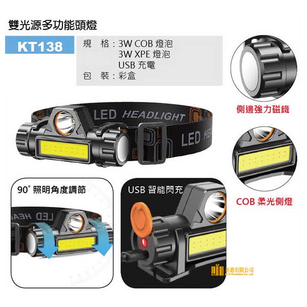 KT133 USB充電頭燈/KT138 雙光源多功能頭燈
