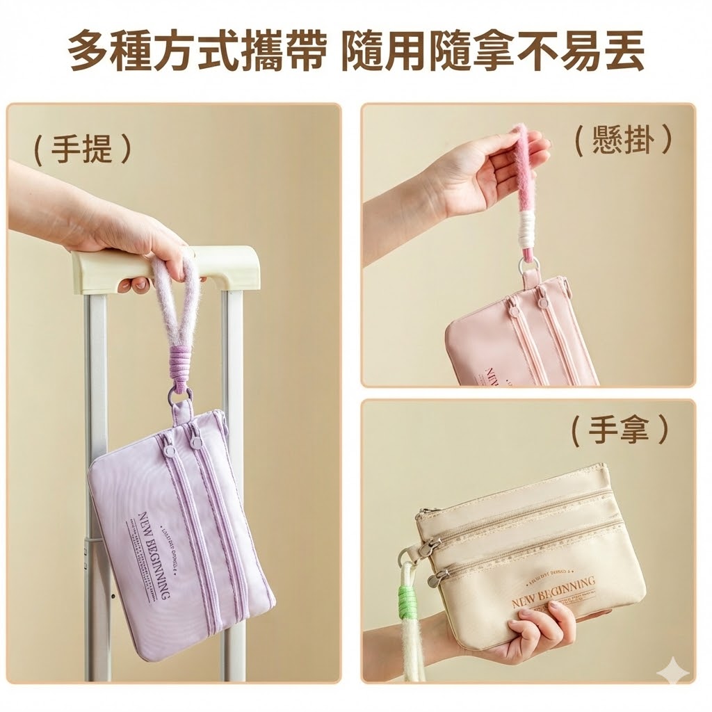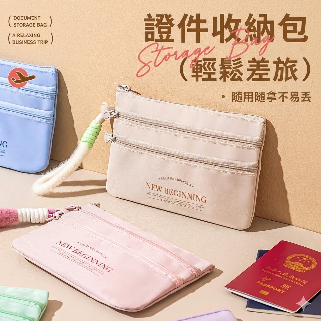 護照 × 機票 × 旅程文件,一包全搞定。 多夾層大容量設計,護照、登機證、卡片與外幣分類收納更有序。 防潑水材質耐用不易髒,出差、旅行皆能快速取物、不耽誤行程。 也適合作為企業年度旅遊、VIP 禮贈品客製印刷,兼具質感與實用度