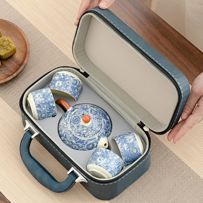 青花雅韻・便攜旅行茶具組,行走之間,也能優雅品茗。