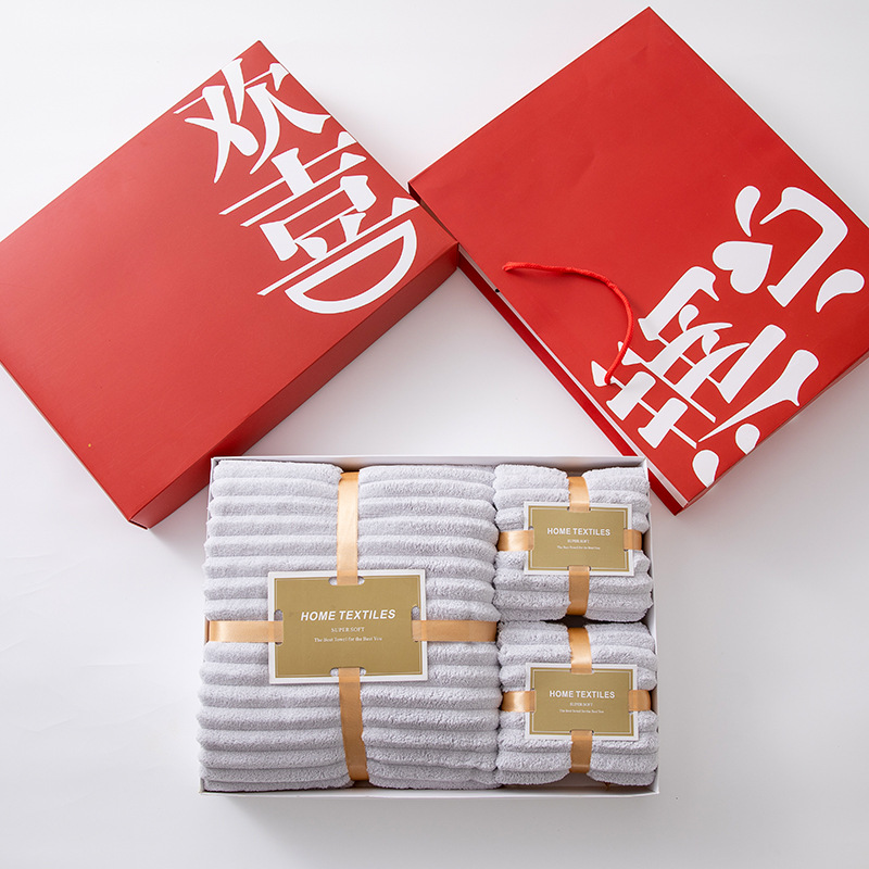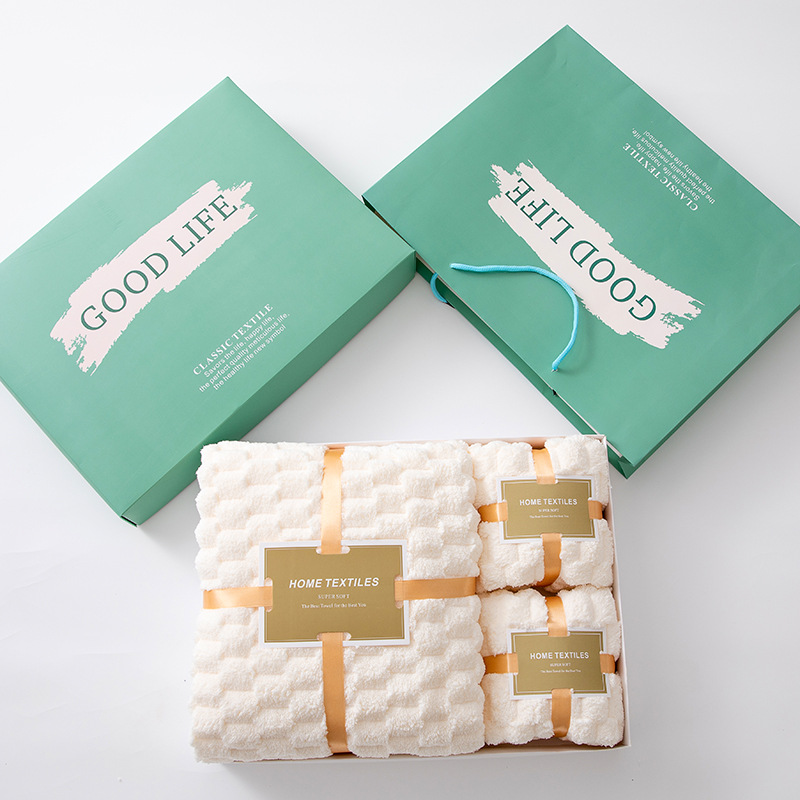 柔軟珊瑚絨|觸感細緻舒適 三件實用組合|浴巾+毛巾搭配 高吸水力|快速吸乾水分 精美禮盒|送禮體面大方